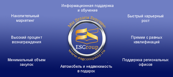 Компания ES Group (ESG) разработала Систему вознаграждения своих Партнеров с учетом многолетнего опыта работы с системами многоуровнего маркетнинга. В данную Систему мы вложили самые новые технологии, которые позволяют комфортно построить бизнес в нашей Компании и выйти на высокий стабильный доход за короткое время. Бизнес в нашей Команде - это высокая перспектива личностного и карьерного роста, это высокий доход, который ограничивается только Вашими желаниями, это возможность получить новые инструменты для бизнеса и параллельно этому обеспечить себя продукцией, которая сделает Вас красивыми и здоровыми. ОСНОВНЫЕ ПРЕИМУЩЕСТВА |